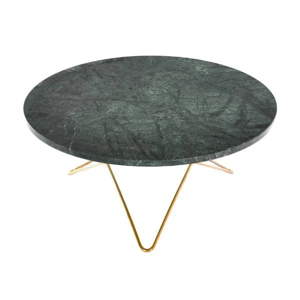 Frame made in stainless steel, powder coated steel or brass (steel with brass surface). Marble tops are to be screwed on to the metal frame. Glass tops can be clicked onto the frame. Leather tables will be delivered assembled. Table tops in Carrara Marble, Black Marquina, Green Indio, Grey Italian (mat) and Brown Emparador will exhibit natural variations in terms of colour, drawings and patterns characteristic for each type of marble. As for Carrara Marble, small cracks can sometimes be found on the polished surface. This phenomenon known as “taroli” is a natural characteristic of the stone, which cannot be eliminated completely. Leather is handmade by skilled craftsmen using high-quality 100 % vegetable tanned aniline leather with a general thickness of 3 mm or more. Natural imperfections on leather surface must be accepted. With time, light and use, the leather will gain depth and lustre as it ages. Due to the highly artisan process used and variation in the natural raw material, leather can wary quite significantly in colour between production batches.