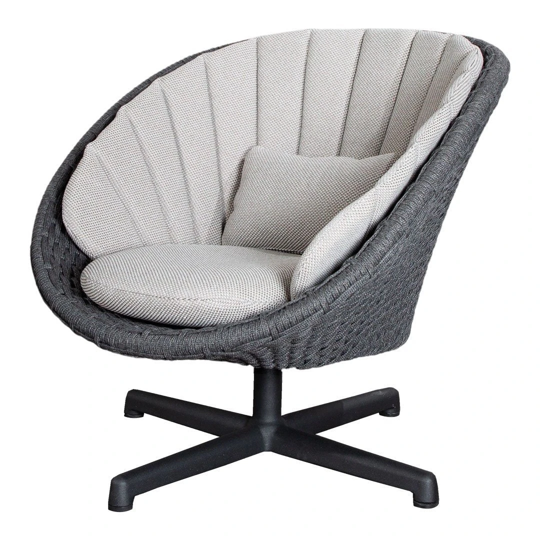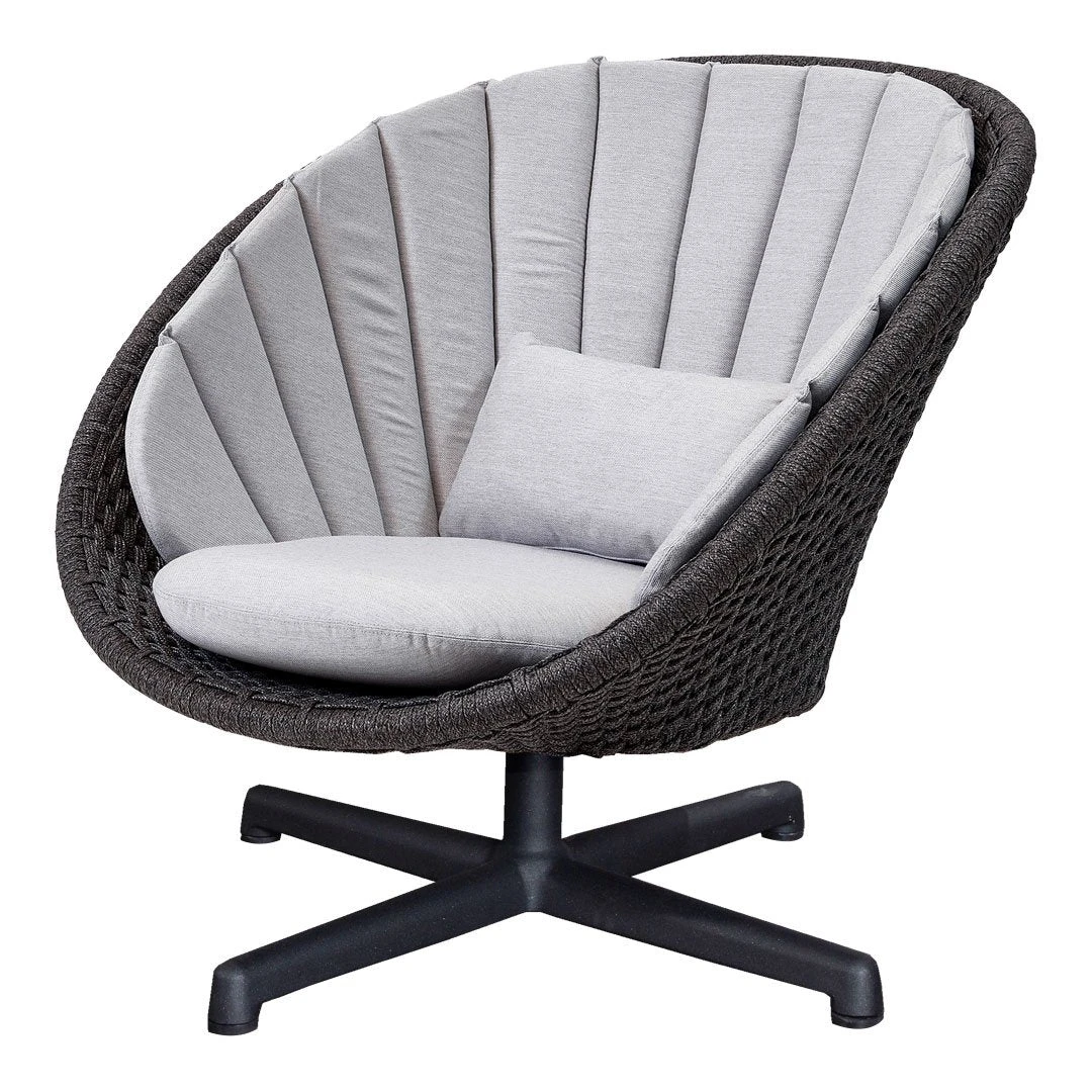 The Peacock lounge chair is a modern piece of furniture designed by Danish designer duo Foersom + Hiort-Lorenzen MDD. A visually beautiful lounge chair with plenty of comfort, ideally suited for the home as well as the contract market. Peacock is manufactured using the soft yet robust Cane-line Soft Rope, which makes it ideal for outdoor use in any climate, as it is both temperature and UV-resistant. The Peacock lounge chair comes with a swivel base which can be rotated 360 degrees.