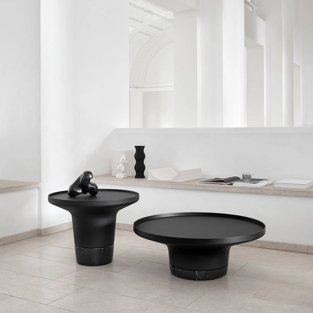 Inspired by harbour bollards used to tie up ships. The perfect equilibrium between shapes and materials, and with a simple yet strong graphical silhouette POLLER matches any interior design. A heavy base made of marble provides the right balance point and makes the table appear elegant and contemporary.