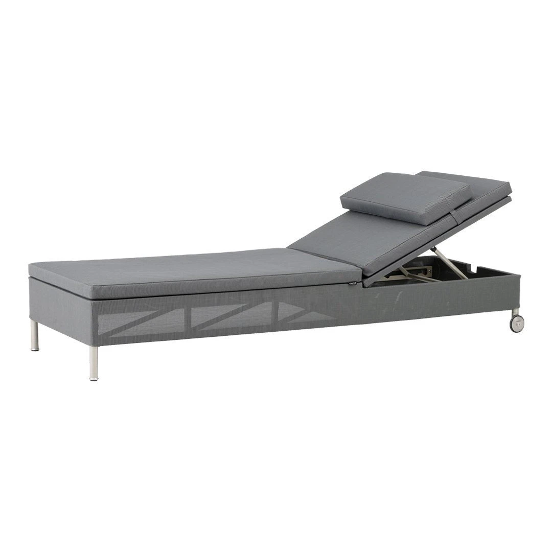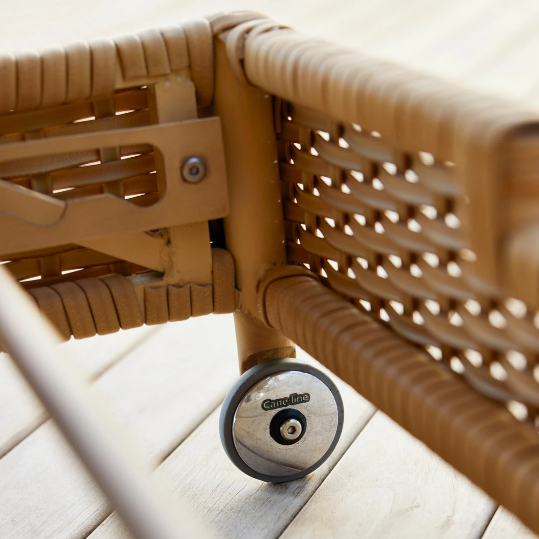 The simple and stylistically pure sunbed Rest complements the Diamond products. Made from pratically maintenance-free Cane-line Tex. The Rest sunbed has two small wheels, that makes it very easy to move around. You are able to adjust the backrest in 4 different positions, so you can both lie flat and sit up and read a book. Rest sunbed is designed by the Cane-line design team.