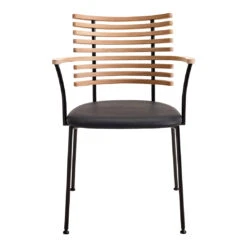 Tiger chair in solid wood and stainless steel with an upholstered seat. This chair was created to accomodate people’s natural seating needs without compromising its elegant, clean lines.