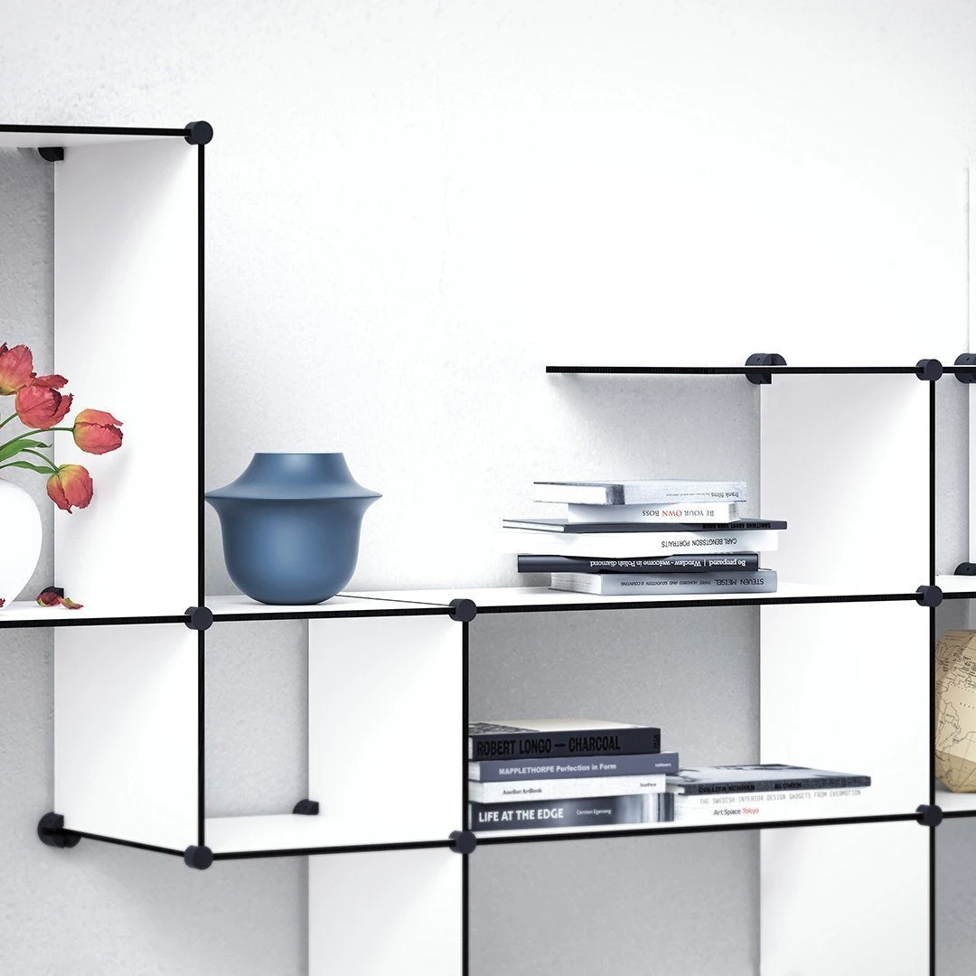Assemble more sets of shelves as you wish and create your own unique storage solution customized for your needs. The load capacity is 5 kg.