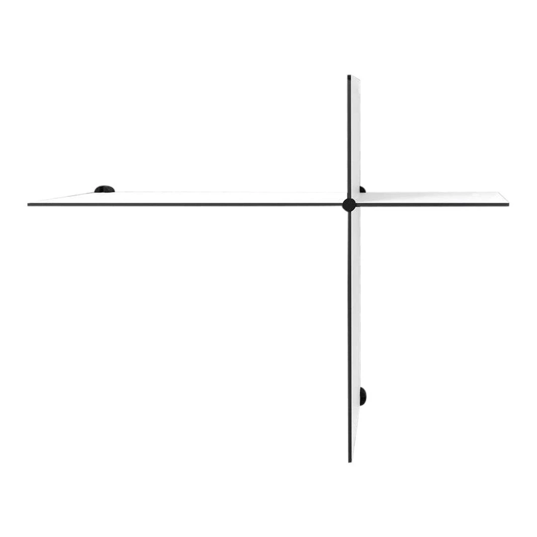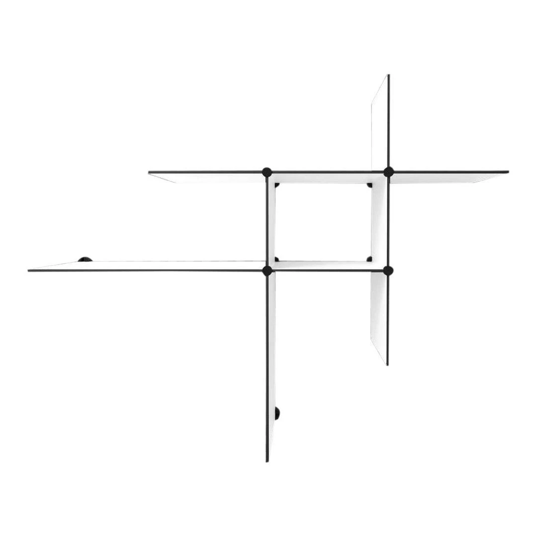 Up The Wall is a flexible shelf system that invites the customer to co-create. The shelves are sold in packages with one short and one long shelf that together form an asymmetrical cross.