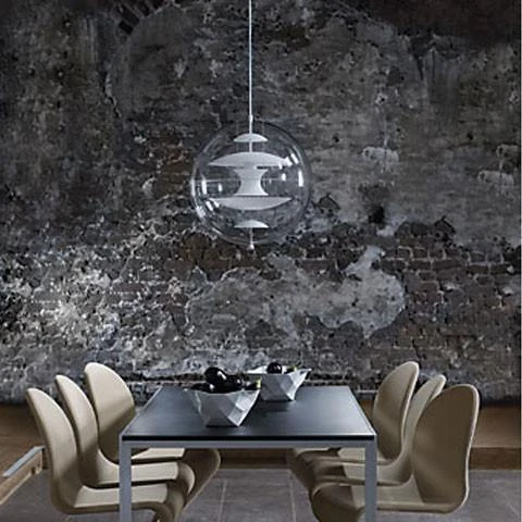 Pendant made of transparent acrylic. Five reflectors inside. Suspended by three steel chains. Incl. ceiling canopy with white fabric.