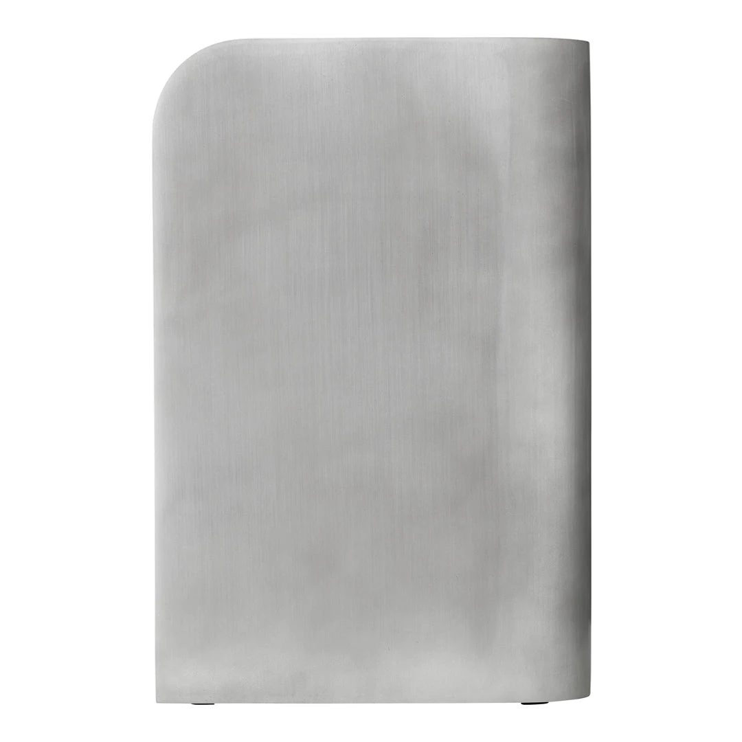 The Volume Side Table offers a unique blend of modern aesthetics, durability and functionality. Crafted from aluminum, it boasts a sleek appearance, polished to create a distinctive rough finish with a unique sheen that adds character and personality to any living space.