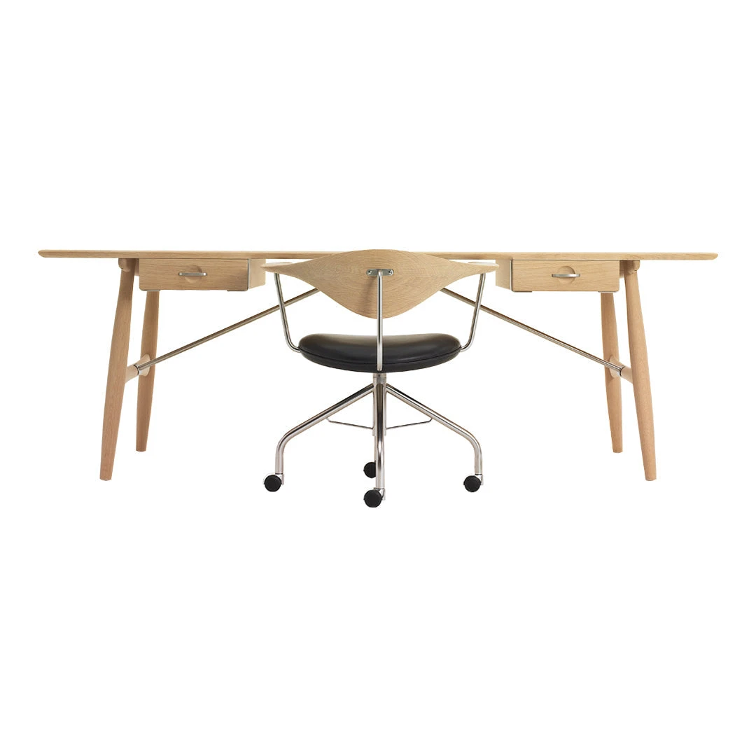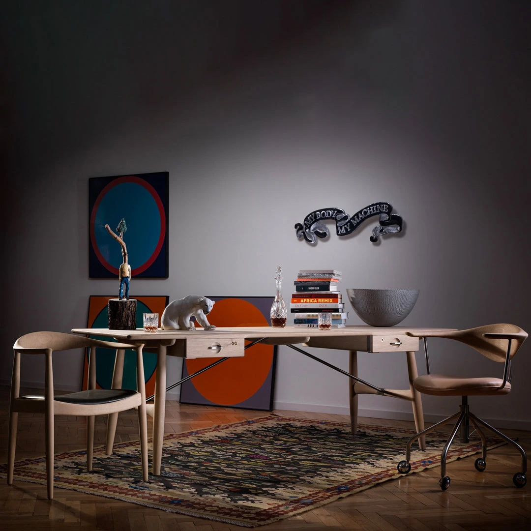 Hans J. Wegner designed the extraordinary pp571 Architect´s Desk in 1953 as a match to the Round Chair (The Chair). Later in 1955 he designed the Swivel Chair hence completing a line of exclusive, functional and exquisitely crafted masterpieces for the CEO office.