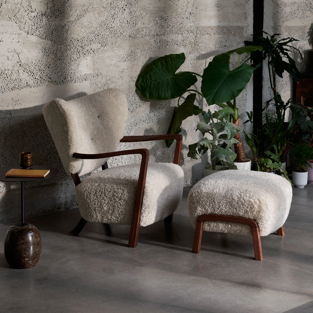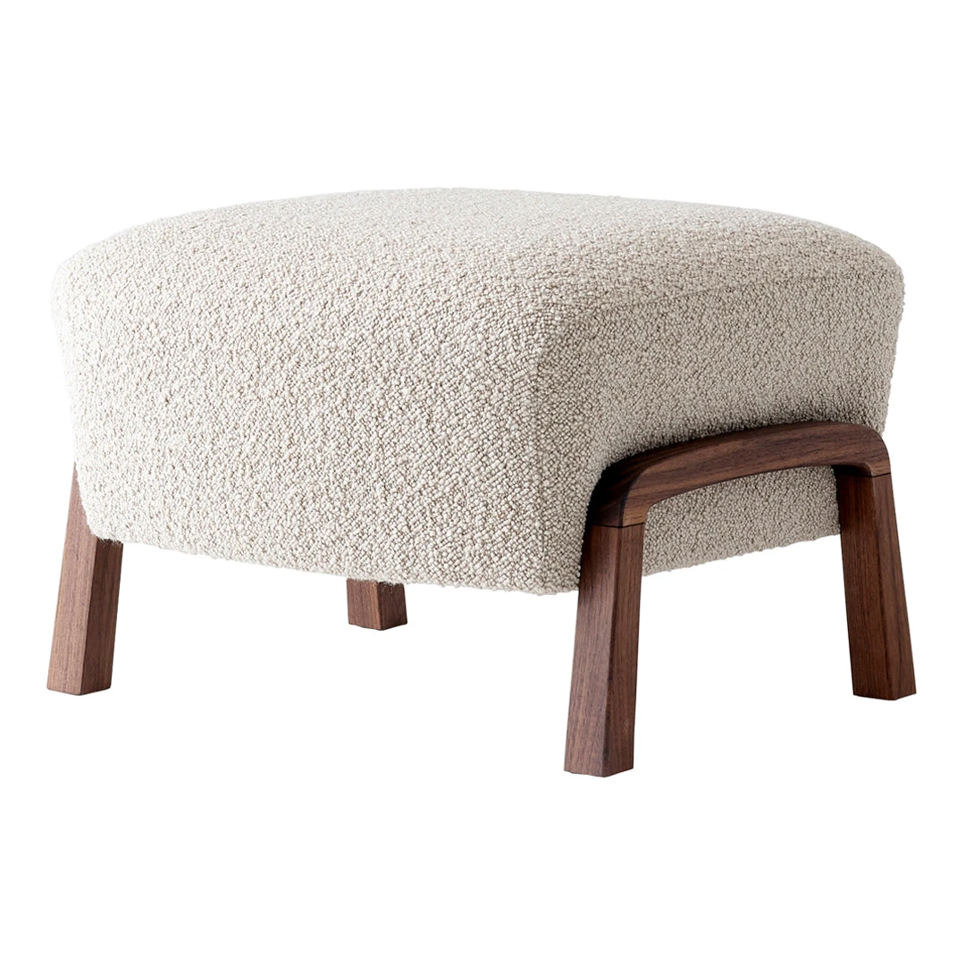 Based on the signature aesthetics of the sculptural Wulff lounge chair, the Wulff pouf is handcrafted with solid oak or walnut legs and is available in the same stylish upholstery as its namesake. Whether you use it as a footrest for the Wulff chair or as a quaint lounge stool on its own – the ultimate goal is relaxation.